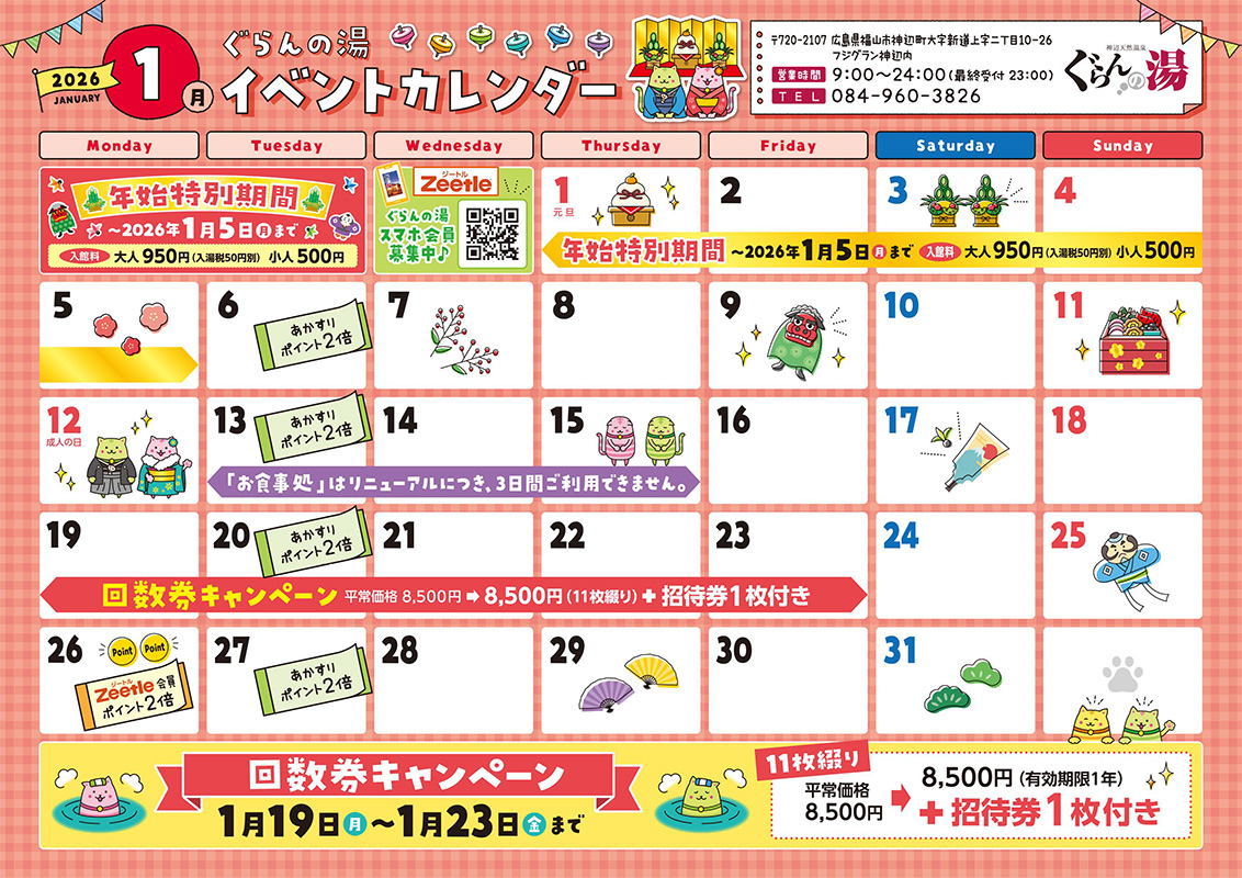 いつもぐらんの湯をご愛顧くださいまして、ありがとうございます。